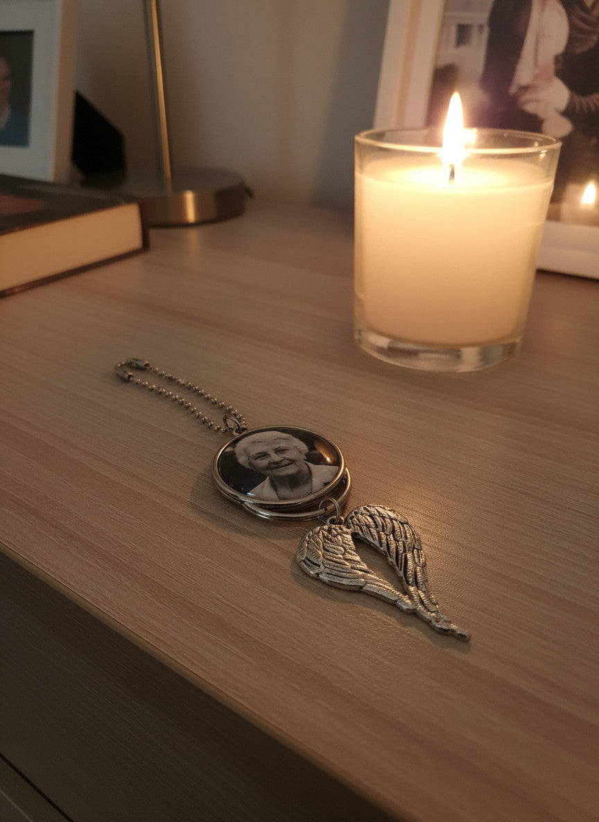 Beautiful personalised double-sided angel wings photo keyring, a meaningful keepsake for your keys, bag or...