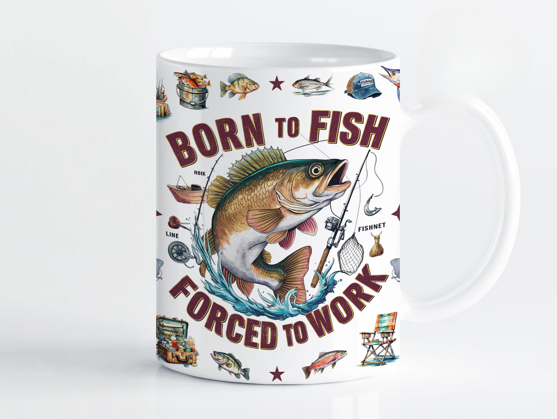 The Fishing Mug is a ceramic coffee mug with a fishing-themed pattern, perfect for any...
