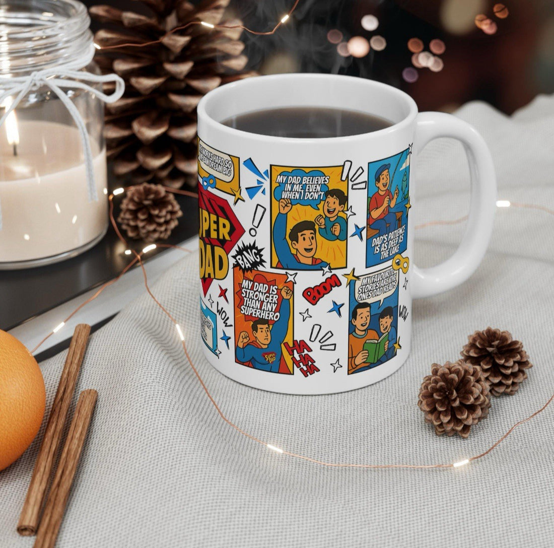 Funny Super Dad Mug – Father's Day Gift, Ceramic Coffee Cup, UK Made Gift