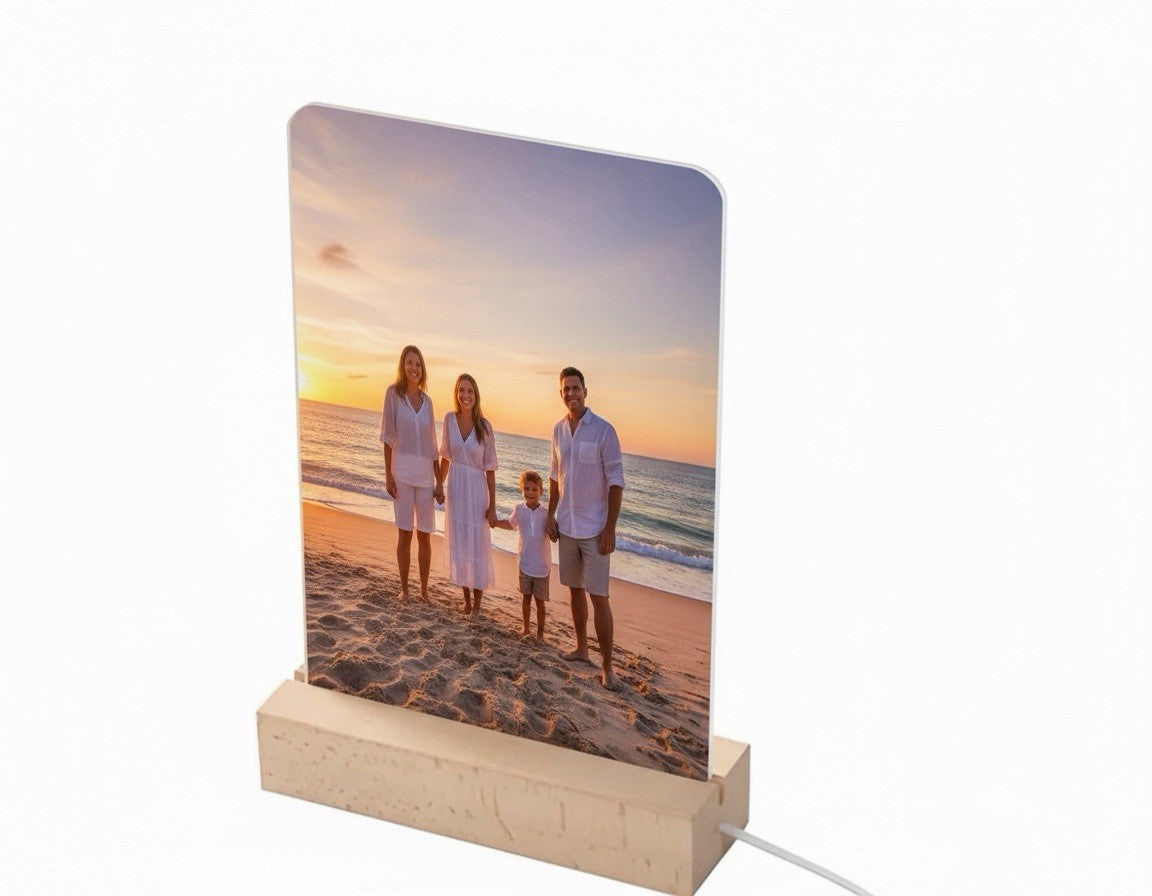 Transform your favourite photos into stunning illuminated displays with our premium personalised acrylic photo frame with LED lamp base!